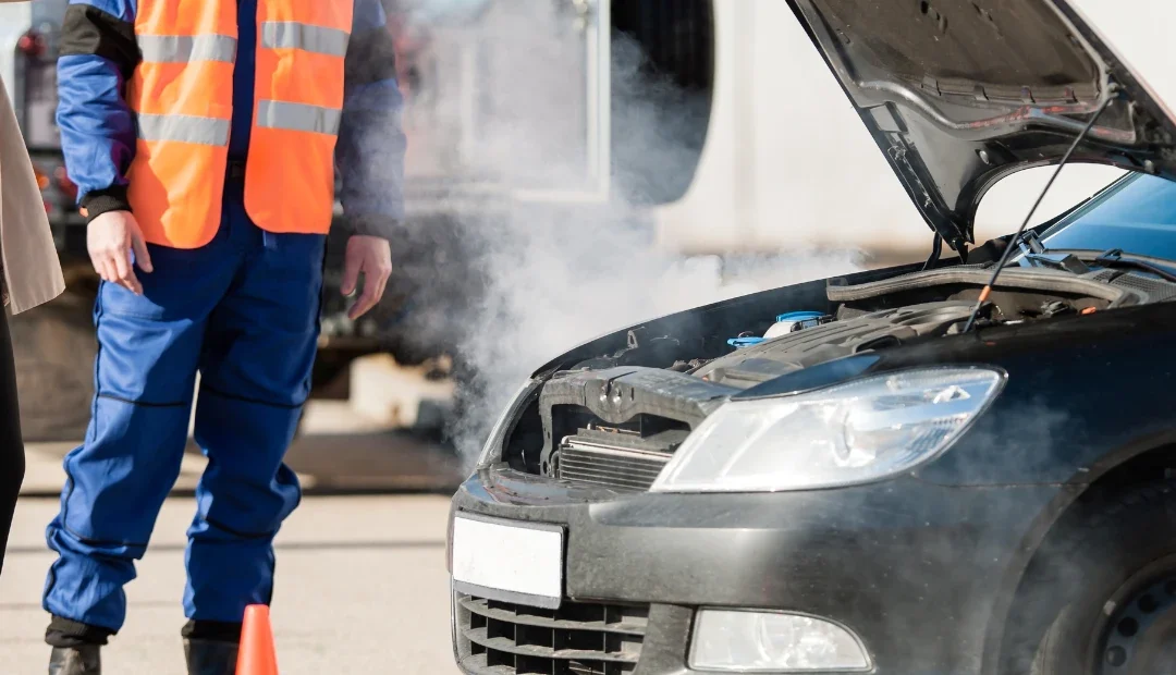 • Car Breakdown Woman get help road assistance man smoking engine from 99CLUB | StockPhotoSecrets